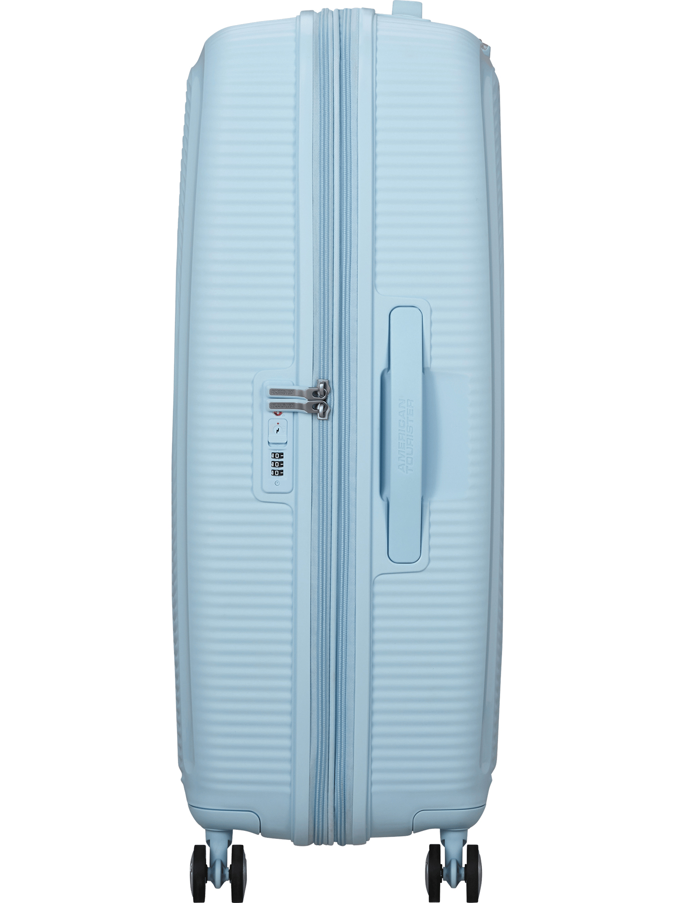 Модель дополнена четырьмя маневренными и прочными колёсами, переносными и телескопической ручками. В чемодане American Tourister 32G*003 Soundbox Spinner 77 Exp всё продумано до мелочей.