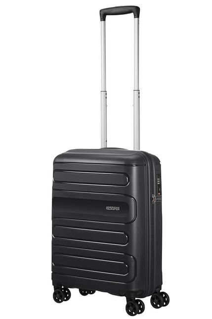 Чемодан American Tourister 51G*001 Sunside Spinner 55 в ручную кладь изготовлен из прочного полипропилена. Внутри чемодана вы найдете эластичные ремни для фиксации ваших вещей и карманы на молнии. Кодовый замок TSA позаботится о сохранности ваших вещей, а верхняя ручка позволит с удобством расположить чемодан на полке над сиденьем в самолете.