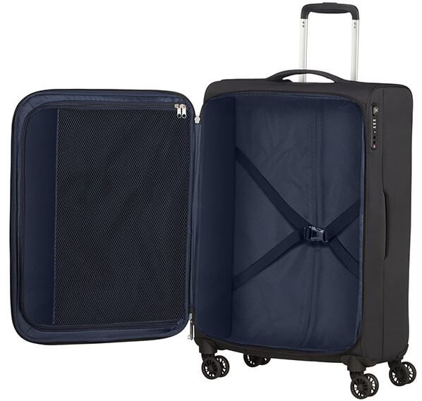 Внутри карман на молнии и ремни. Встроенный кодовый замок TSA.