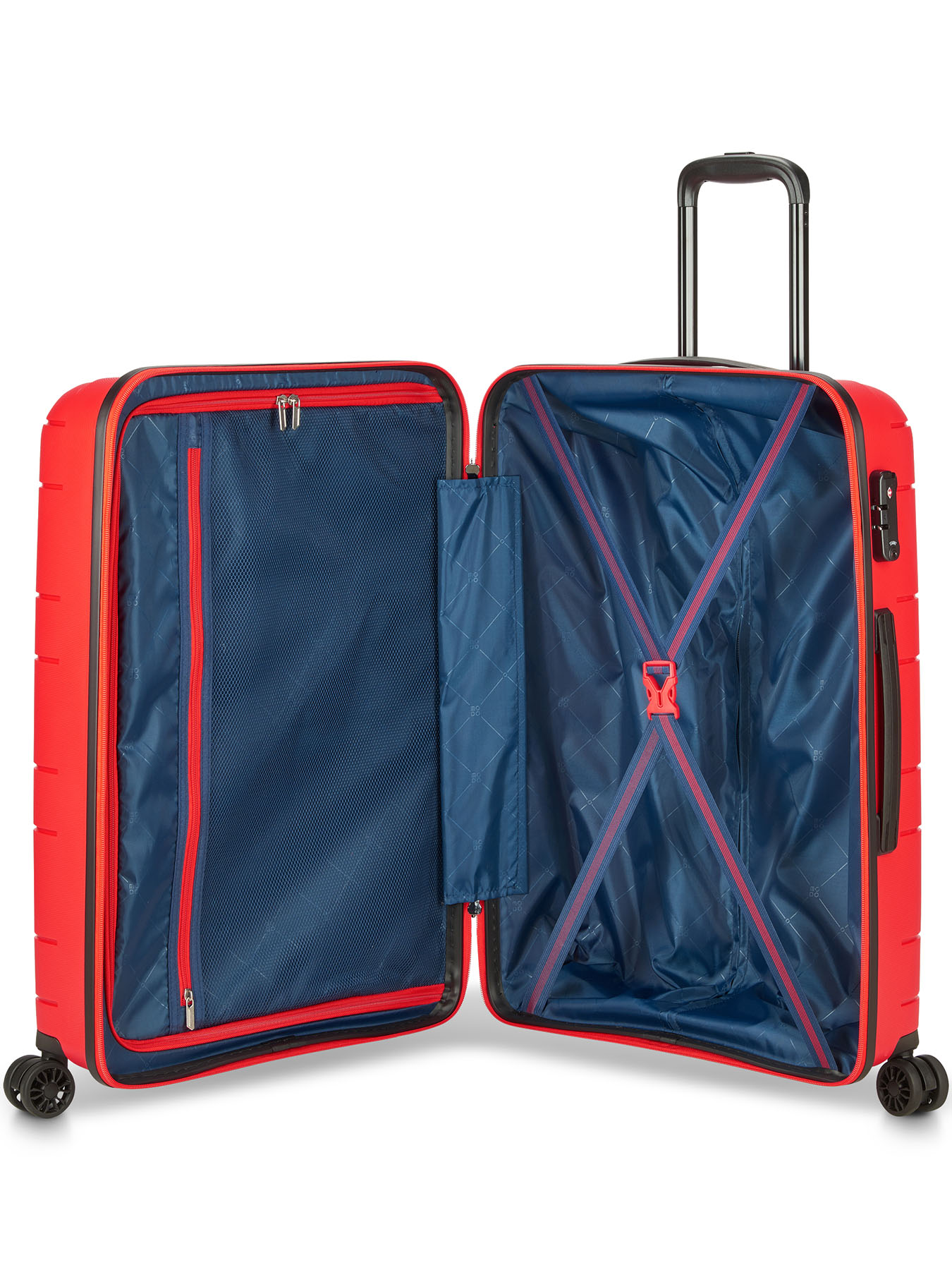 • Выдвижная телескопическая ручка с фиксатором для комфортного перемещения багажа.