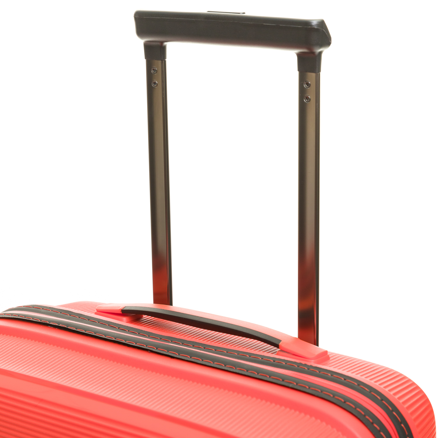 Характеризуется высокой ударостойкостью, твердостью и пластичностью. В зависимости от марки используемого материала, чемоданы из полипропилена могут быть как жесткими – на защелках, так и гибкими – на молнии.