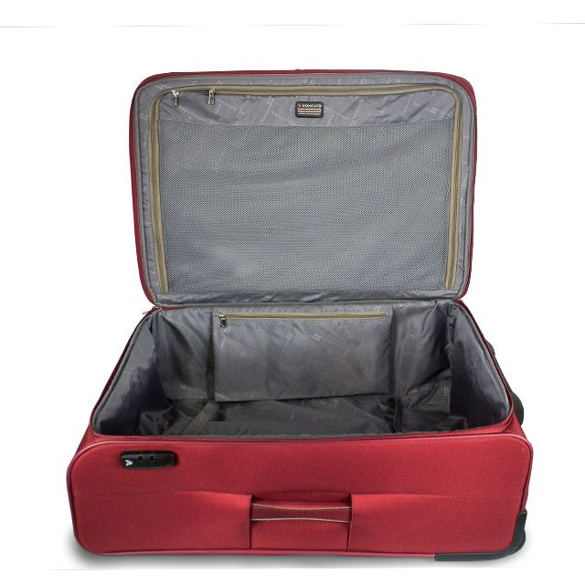 Синтетическое волокно. Плюсами такого материала будут незначительная сминаемость, высокая прочность и стойкость к истиранию. Большинство чемоданов из полиэстера имеют водоотталкивающую пропитку.