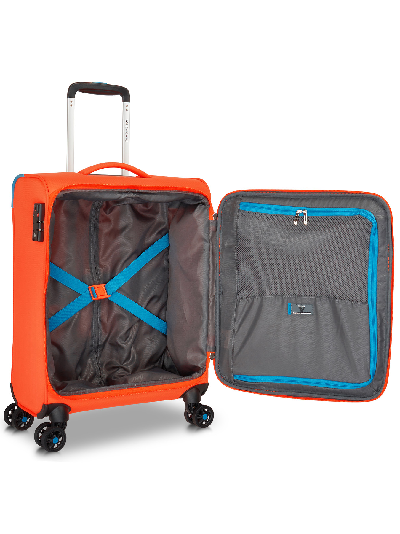 Стильный дизайн коллекции с контрастными элементами не даст чемодану затеряться среди других. Путешествуйте комфортно и спокойно с практичным чемоданом Roncato Lite Soft, разработанным в Италии.