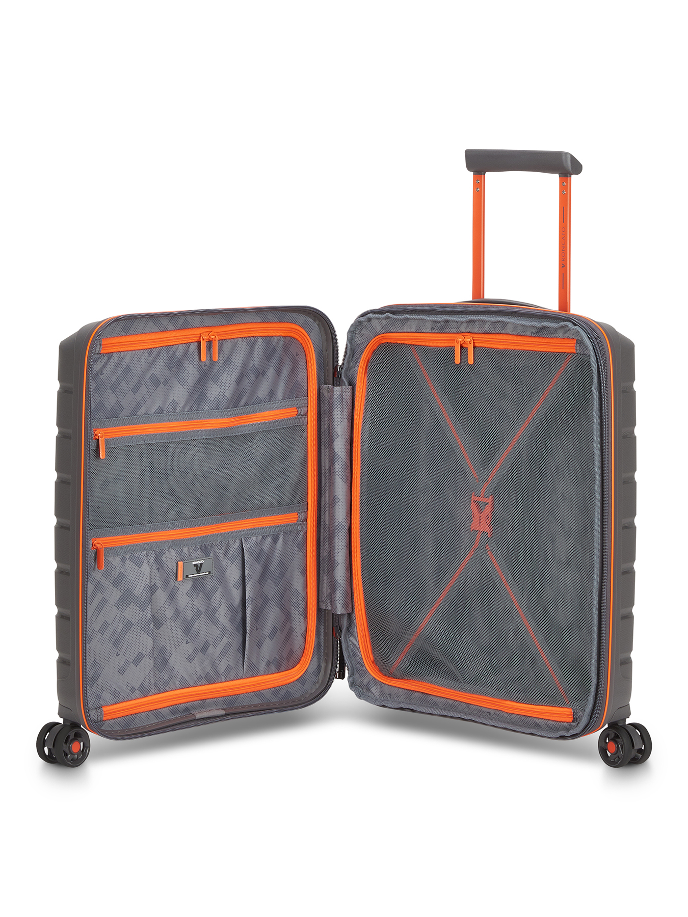 Внутри чемодана для ручной клади Roncato B-Flying Move — функциональная организация, которая поможет аккуратно упаковать вещи для поездки на 1-3 дня. Одно отделение с сетчатым разделителем и прижимными ремнями увеличивается в объеме, а второе оснащено перегородкой на молнии с двумя карманами. Пластиковый чемодан Roncato — надежный компаньон для новых открытий!