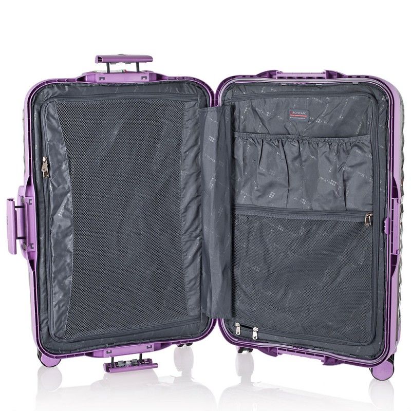 Характеризуется высокой ударостойкостью, твердостью и пластичностью. В зависимости от марки используемого материала, чемоданы из полипропилена могут быть как жесткими – на защелках, так и гибкими – на молнии.