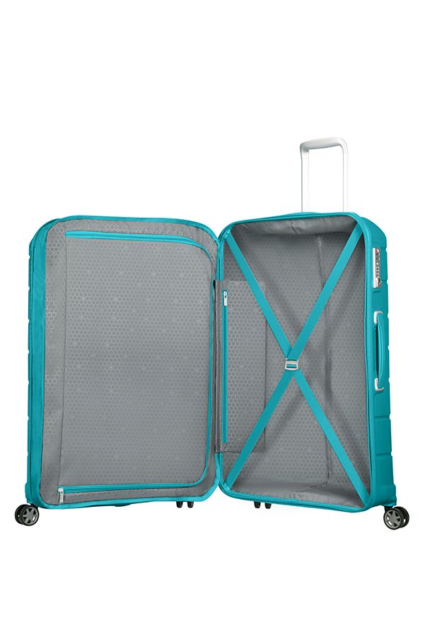 Чемодан Samsonite CB0*004 Flux Spinner Expandable имеет два внутренних отделения с перегородкой на молнии, внутренний карман на молнии для мелочей и ремни-фиксаторы для вещей.