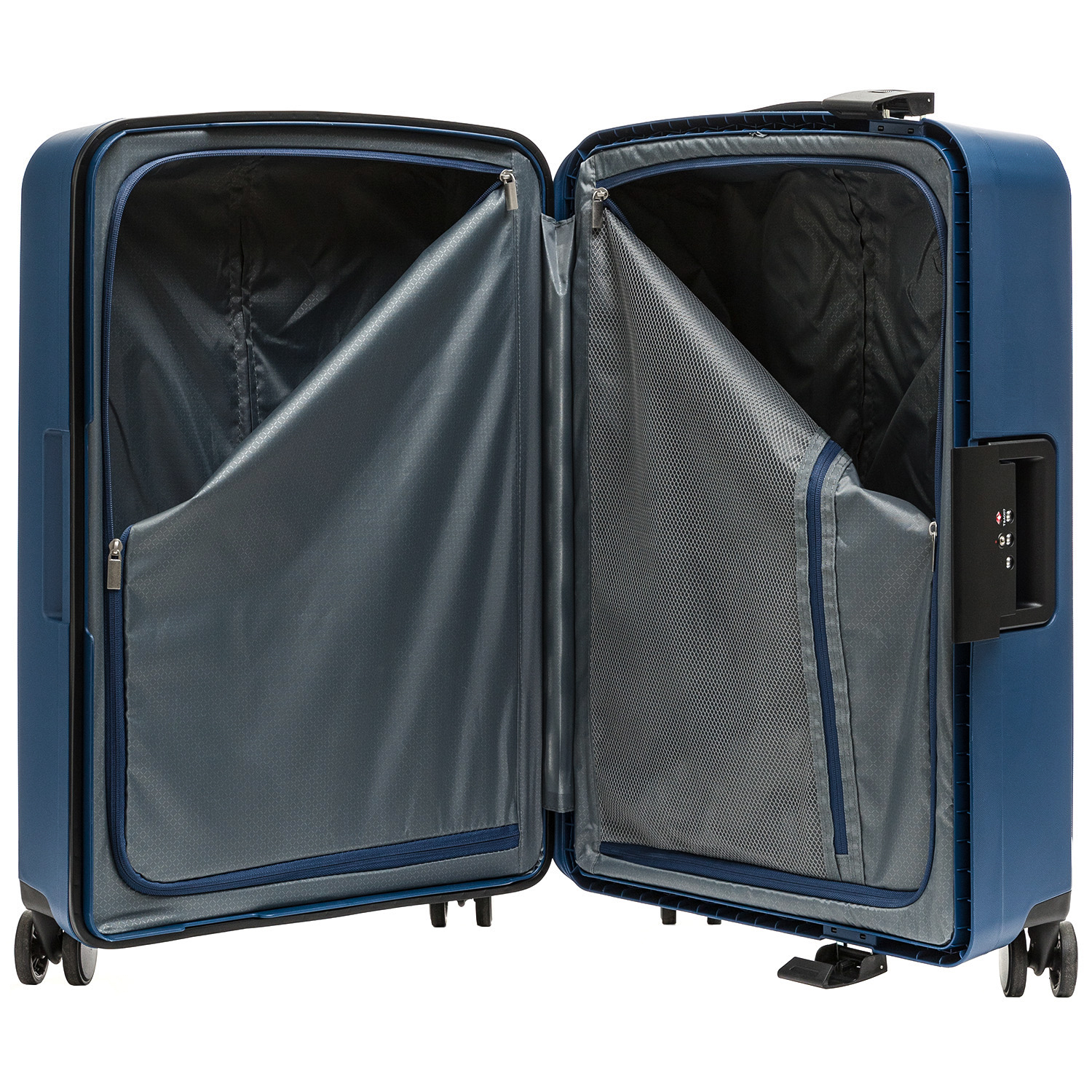 Характеризуется высокой ударостойкостью, твердостью и пластичностью. В зависимости от марки используемого материала, чемоданы из полипропилена могут быть как жесткими – на защелках, так и гибкими – на молнии.