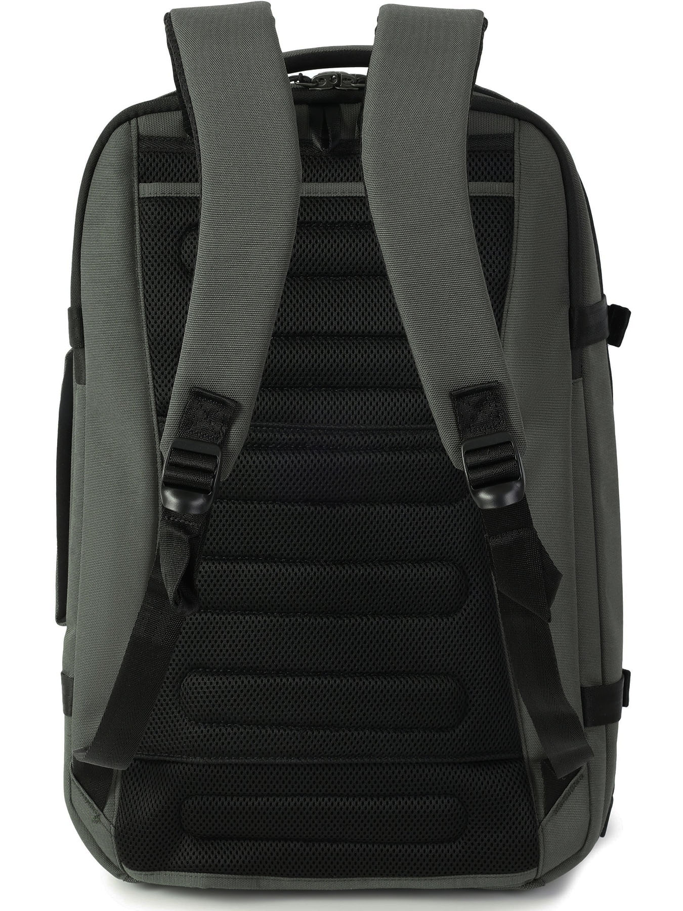 • Анатомическая рельефная спинка с потайным карманом и рукавом для крепления на телескопическую ручку чемодана