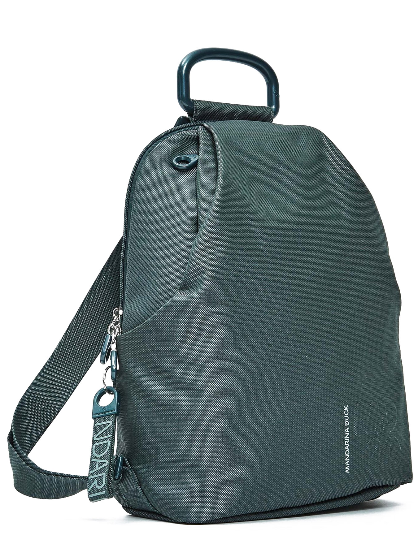 Рюкзак Mandarina Duck оснащен двумя регулируемыми лямками из нейлона и усиленной ручкой для переноски. Заключительные штрихи в дизайн вносят оригинальные пуллеры и подвеска с логотипом бренда.