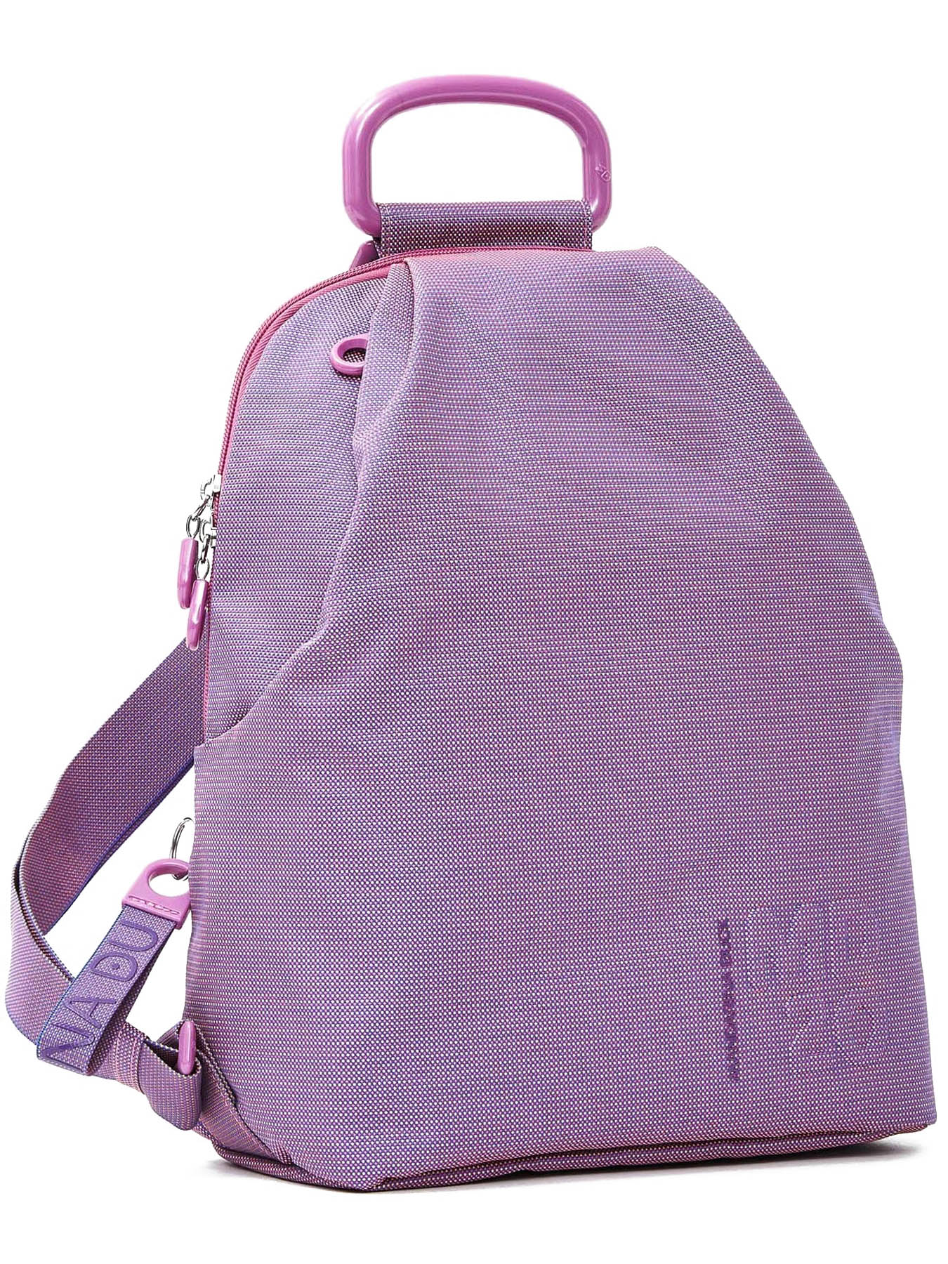 Рюкзак Mandarina Duck оснащен двумя регулируемыми лямками из нейлона и усиленной ручкой для переноски. Заключительные штрихи в дизайн вносят оригинальные пуллеры и подвеска с логотипом бренда.
