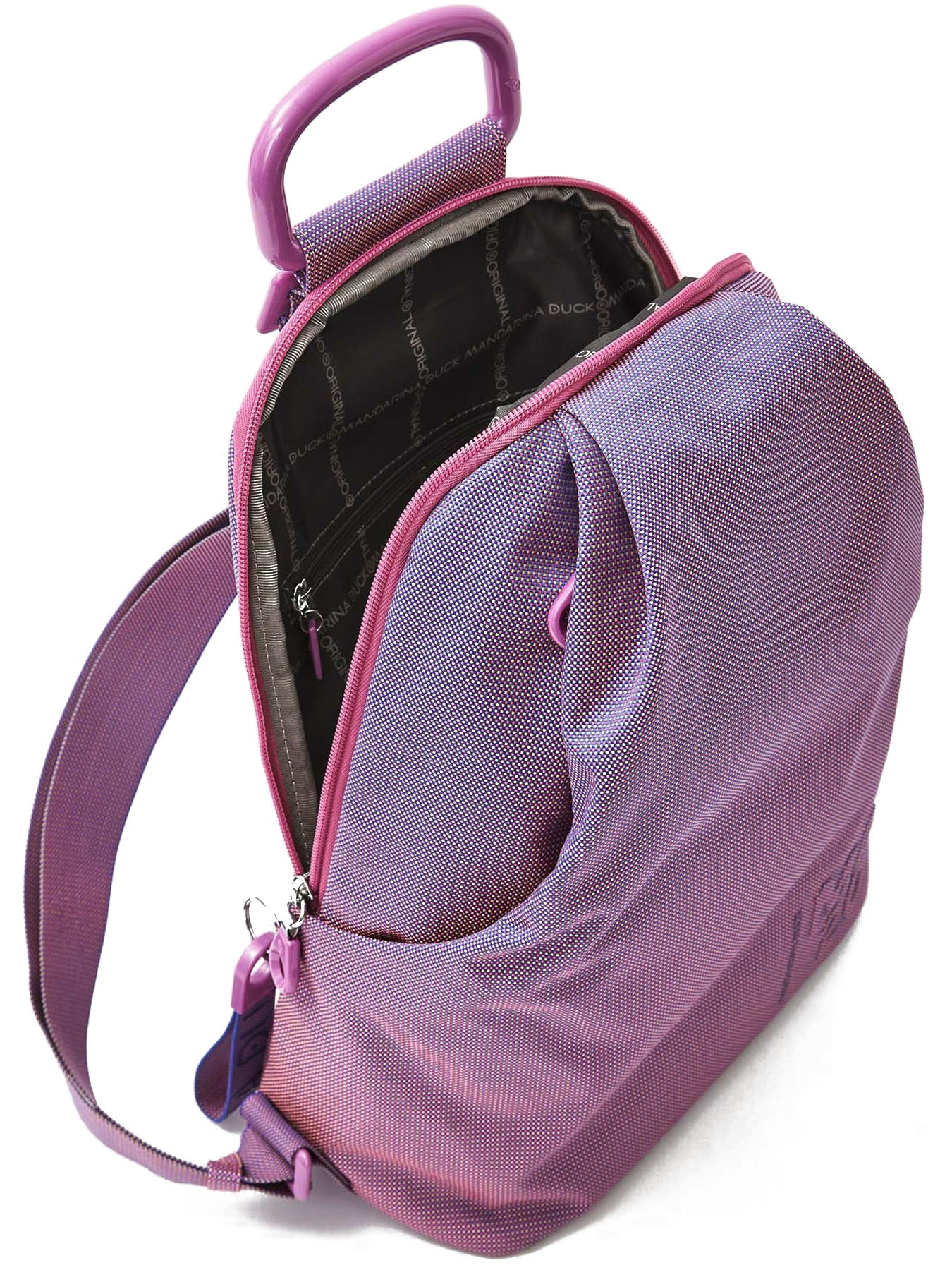 Рюкзак Mandarina Duck оснащен удобной организацией для безопасного хранения нужных вещей: