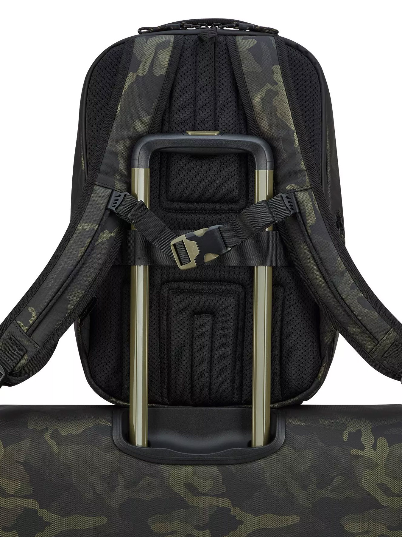 • умный дизайн для путешествий. На спинке предусмотрена удобная лямка для крепления рюкзака к ручке чемодана на колесах.