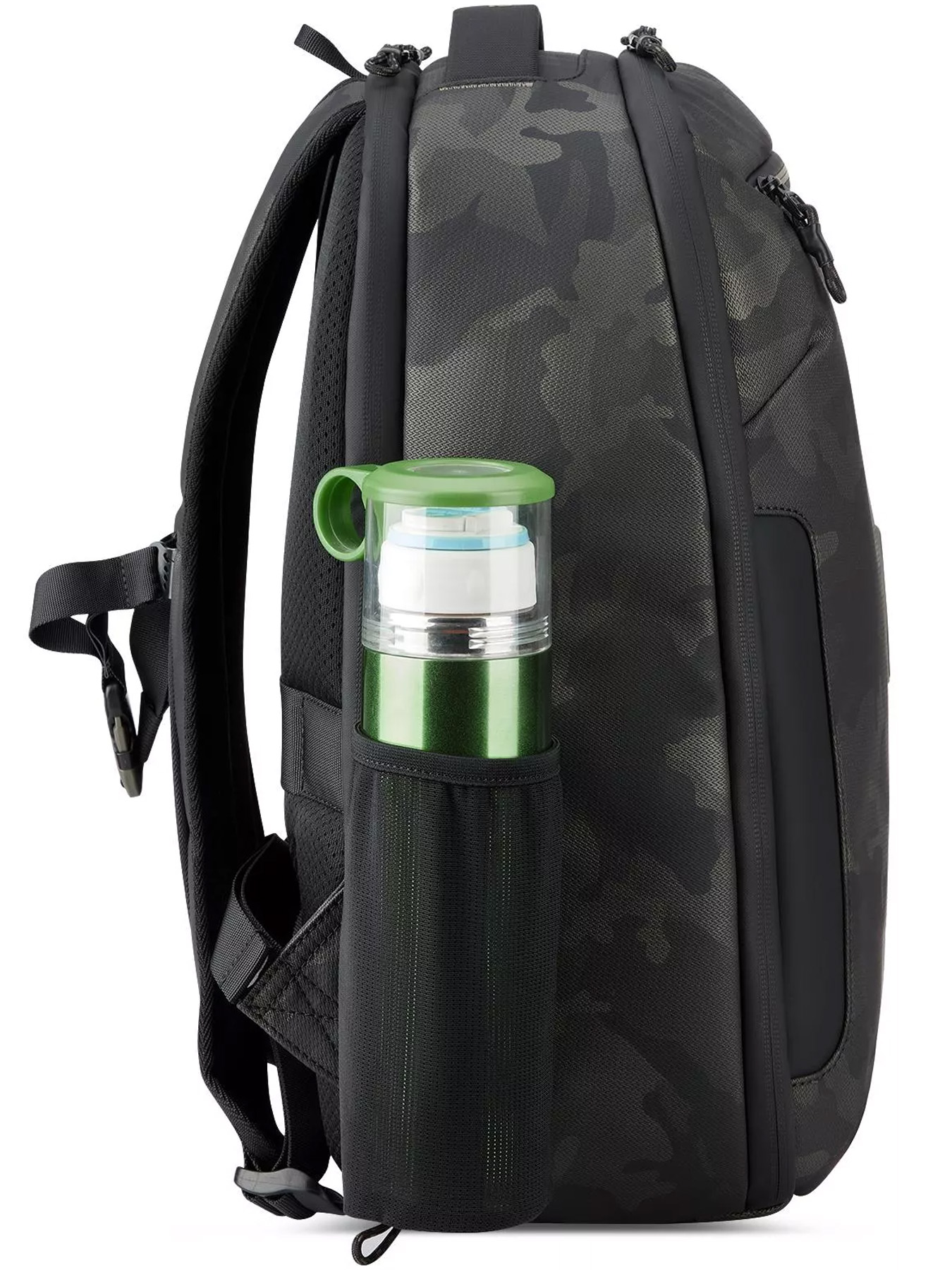- Боковые карманы для бутылок с водой и мелочей