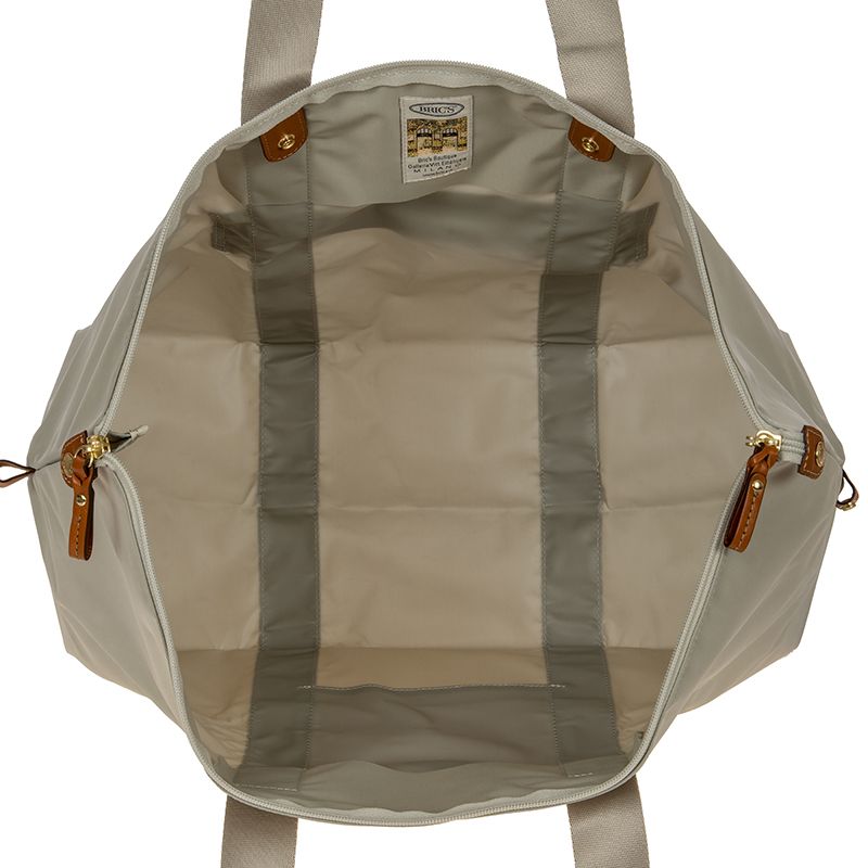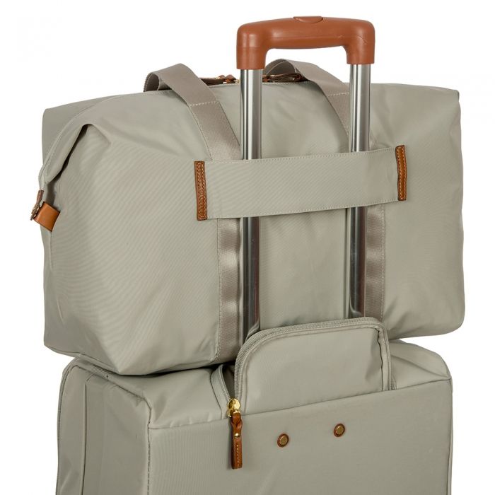 Складная дорожная сумка Bric's BXG30203 X-Bag имеет одно вместительное отделение на молнии. При необходимости сумку можно сложить в чехол, что очень практично. Этот же чехол крепится внутри сумки в качестве внутреннего кармана или его можно превратить в элегантную плечевую сумочку. Простая и удобная организация! Также Bric's X-Bag имеет умный карман – возможность зафиксировать сумку на ручке чемодана.