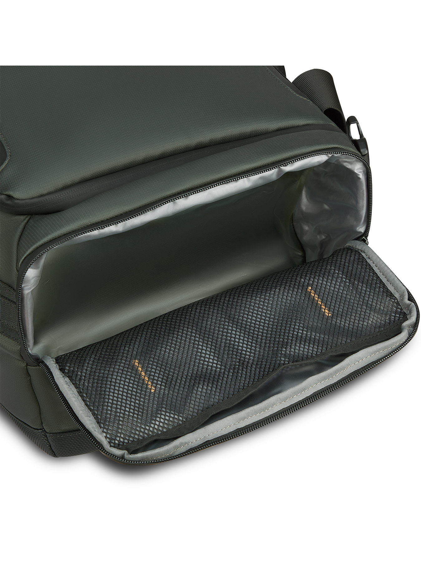 • максимальная защита. Внешняя ткань — лёгкий и прочный полиэстер Pongee 900D с полиуретановым водоотталкивающим покрытием. В сочетании с водонепроницаемыми молниями это гарантирует надежную защиту содержимого от дождя и влаги.